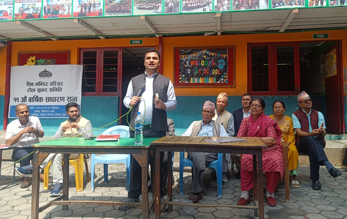 टोखा नगरपालिकाका उपमेयर मुरारी तामाङले शिब मन्दिर टोलमा चिकित्सक, पत्रकार, कानून ब्यबसायी, सामाजिक अभियन्ता, ब्यबसायी, सुरक्षाका निकाय र सरकारी उच्च अधिकारीहरुको उल्लेख्य सहभागिता रहेको बताउनुभयो । उहाँले यस क्षेत्रमा पवित्र धार्मिक स्थल हरिहर मन्दिर सन्न्यास आश्रम रहेकाले यस क्षेत्रको बिकासका लागि नगरपालिकाले बिशेष महत्व दिएको बताउनुभयो । उहाँले हरेक क्षेत्रका बिज्ञ र प्रभावशाली नागरिक भएको टोलको अधिबेशनले यस नगरपालिकाका लागि मात्र नभइ अन्य क्षेत्रका लागि पनि उदाहरणीय हुने खालको महिला मात्र भएको कार्यसमिति चयन गरेकोमा बिशेष आभार ब्यक्त गर्नुभयो । उहाँले यो क्षेत्रमा स्वस्थ जीवनका लागि योग अभ्यासका लागि बजेट बिनियोजन भैसकेको जानकारी दिनुभयो ।