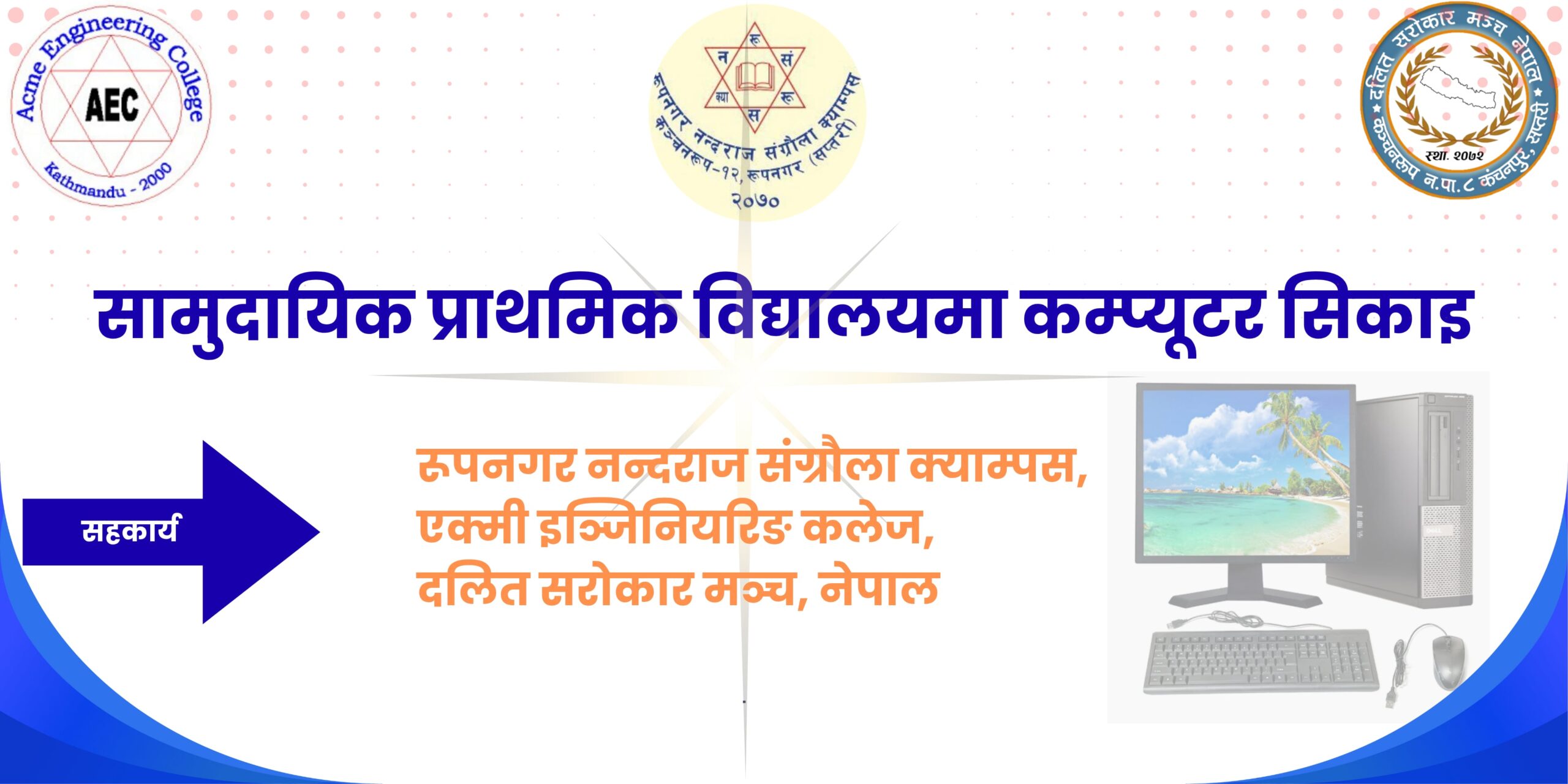 ‘सामुदायिक प्राथमिक विद्यालयमा कम्प्यूटर सिकाइ’ नाम दिइएको शिक्षा सुधारका लागि थालिएको यो अभियान रूपनगर नन्दराज संग्रौला क्याम्पस, एक्मी इञ्जिनियरिङ कलेज, काठमाडौँ र दलित सरोकार मञ्चको सहकार्यमा थालिएको जानकारी आयोजकहरूले दिएका छन्।