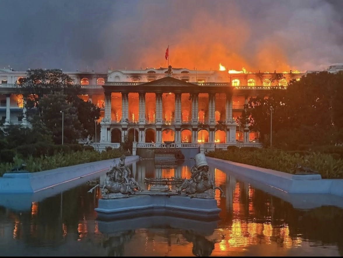 पहिलो दिनको घटनाले आम नागरिक , युवा बिद्यार्थीहरुको रगत यति तात्यो कि त्यस दिन राति शायद कोही पनि सुत्न सकेनन् । तर राज्यको नेतृत्व गरेकाले माफी मागेर राजीनामा दिनुको साटो उल्टै उडाउने काम गरे । अहं घमण्ड र दम्भले सीमा नाघेको झल्को स्पष्ट देखिन्थ्यो । अहं र घमण्डले यो खालको वीऊ रोपेकै हो । एकातिर अबोध बालक बालिकामाथि चरम दमन अर्कोतिर सरकारको बहुलट्ठीपनको कारण दोस्रो दिन युवाहरु मात्र होइन अभिभावक पनि देशब्यापि रुपमा सडकमा उत्रिए । जेनजी समूहले आह्वान गरेको प्रदर्शनमा अन्य नदेखिने शक्ति पनि मिसियो । अनि संघीय संसद भवन, सिंहदरवार, सर्बोच्च अदालत सहित अन्य अदालत, राष्ट्रपति भव, प्रधानमन्त्री निवास, मन्त्री निवास, राष्ट्रिय उद्योगहरु, पांचतारे होटल, अन्य महत्वपुर्ण सरकारी कार्यालय, पार्टी कार्यालय, नेताका घर मात्र होइन, प्रहरी चौकी माथि चार घण्टाको वीचमा ध्वंस हुने गरी आगो मात्र लगाइएन कि तोडफोड पनि गरियो । भेटिएसम्मका नेतालाई कुटने काम पनि भयो । नेपाली सेना सहितका सुरक्षा निकायको अगाडि संसद भवन जल्यो, सिंहदरबार जल्यो, सर्बोच्च अदालत ध्वस्त भयो । सिंहदरवार र सर्बोच्च अदालत सहित महत्वपूर्ण सरकारी कार्यालय ध्वस्त मात्र होइन देशको इतिहास नै खरानी भएको छ ।