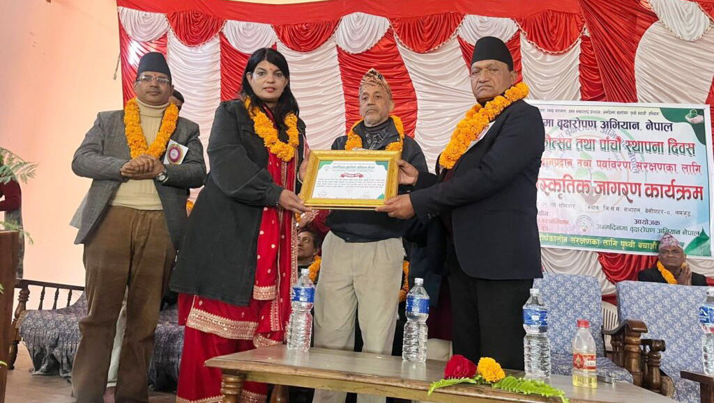 बेसीशहरमा आयाेजित अभियानकाे विशेष कार्यक्रममा बेसीशहर नगरपालिकाका प्रमुख गुमान सिंह अर्यालले टेलिभिजन प्रस्ताेता राेजी ढकाल पराजुलीलाई जन्मदिनमा वृक्षराेपण अभियान प्रतापशाली-इश्वरी स्मृति काेषबाट नगद राशी पुरस्कारसहित सम्मान पत्रले सम्मान गर्नुभएकाे हाे ।