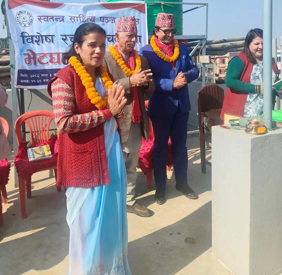 काठमाडौं । स्वतन्त्र साहित्य पुञ्ज नेपालले विशेष कवि गोष्ठी एवं श्रष्टा भेटघाट कार्यक्रय सम्पन्न गरेकाे छ । ललितपुरस्थित महालक्ष्मी नगरपालिका टिकाथलीमा संस्थाले वरिष्ठ साहित्यकार तथा छन्द कविहरुको उपस्थितिमा भव्य जमघट कार्यक्रम आयोजना गरेको हो ।