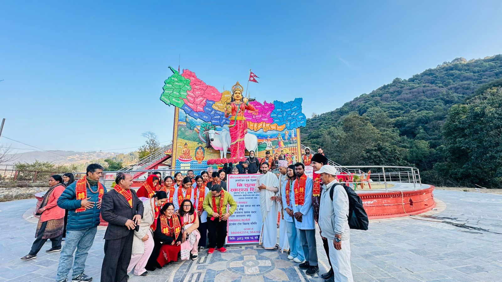 रेणु खरेलले संयोजन गर्नुभएको शिविर सञ्चालनमा सहयोग गर्ने सबैलाई श्रीपञ्चमहालक्ष्मी मन्दिर श्रीपीठका उत्तराधिकारी स्वामी श्रीवासुदेव प्रपन्नाचार्य तथा श्रीमुक्तिनाथ संस्कृत गुरुकुलम् वेदपाठशालाका श्रीदामोदर गुरुले बिदाइ गर्नुभएको थियो । नेपाल आमा मन्दिर परिसरमा श्रीमुक्तिनाथ बाबा अस्पताल (स्वास्थ्य सेवाश्रम) समेत निर्माणाधीन रहेको छ ।