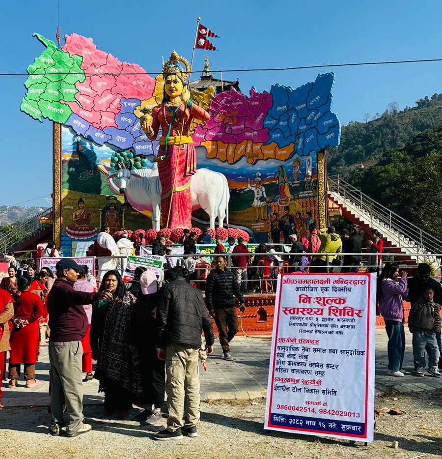 काठमाडौं । स्वयंप्रकट श्रीशालग्राम भगवानको पावन सान्निध्य श्रीनेपाल आमा मन्दिर परिसरमा एकदिने निःशुल्क स्वास्थ्य शिविर आयोजना गरिएको छ । श्रीपञ्चमहालक्ष्मी मन्दिरले विभिन्न स्वास्थ्य संस्थाहरुको सहयोगमा शंखरापुर नगरपालिका वडा–५ इटाखेलस्थित नेपाल आमा मन्दिर परिसरमा शिविरकाे आयोजना गरेकाे हो ।